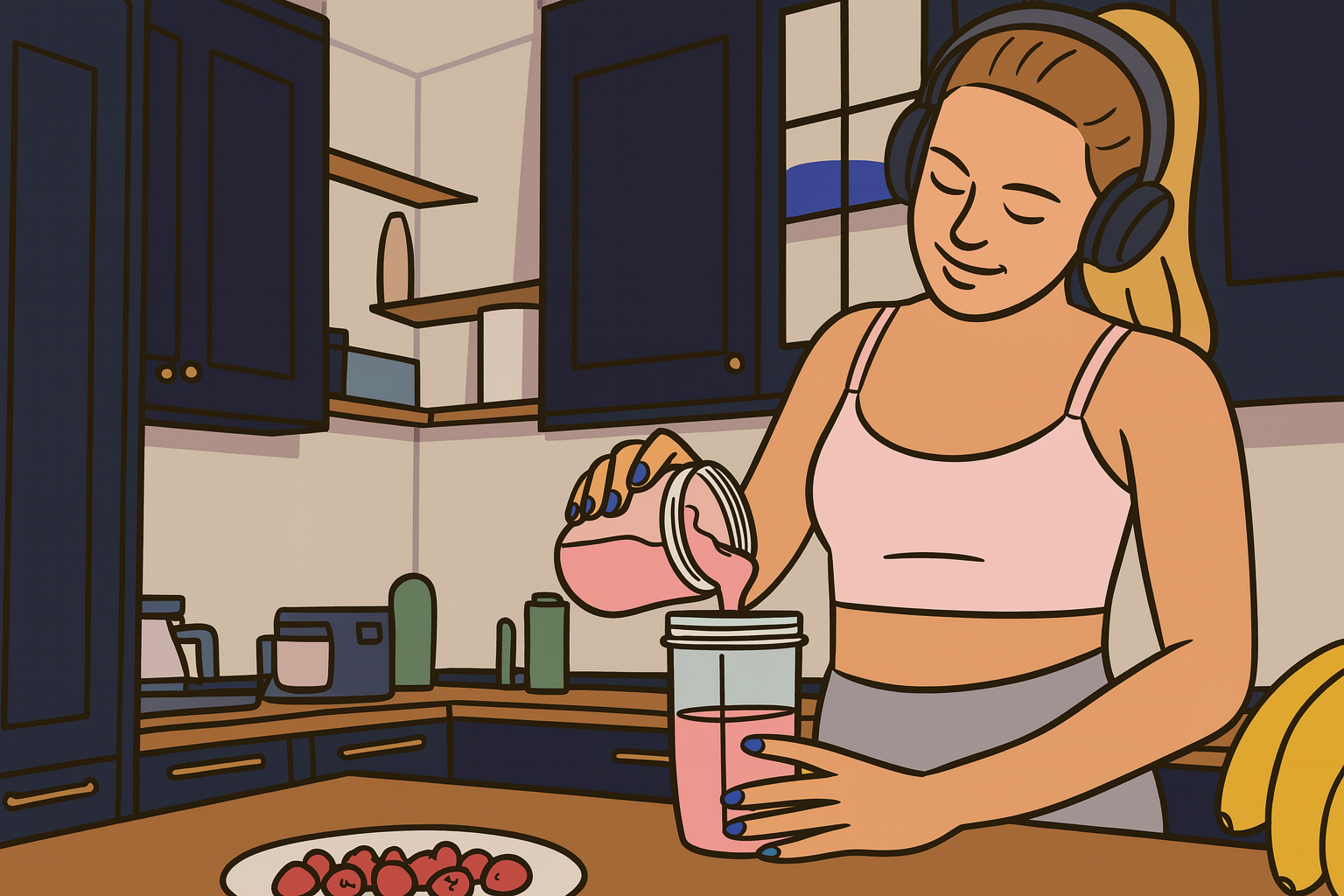 • 단백질 (1스쿱 또는 1~2큰술): 그릭 요거트, 무첨가 단백질 파우더, 두부, 치아씨드 등